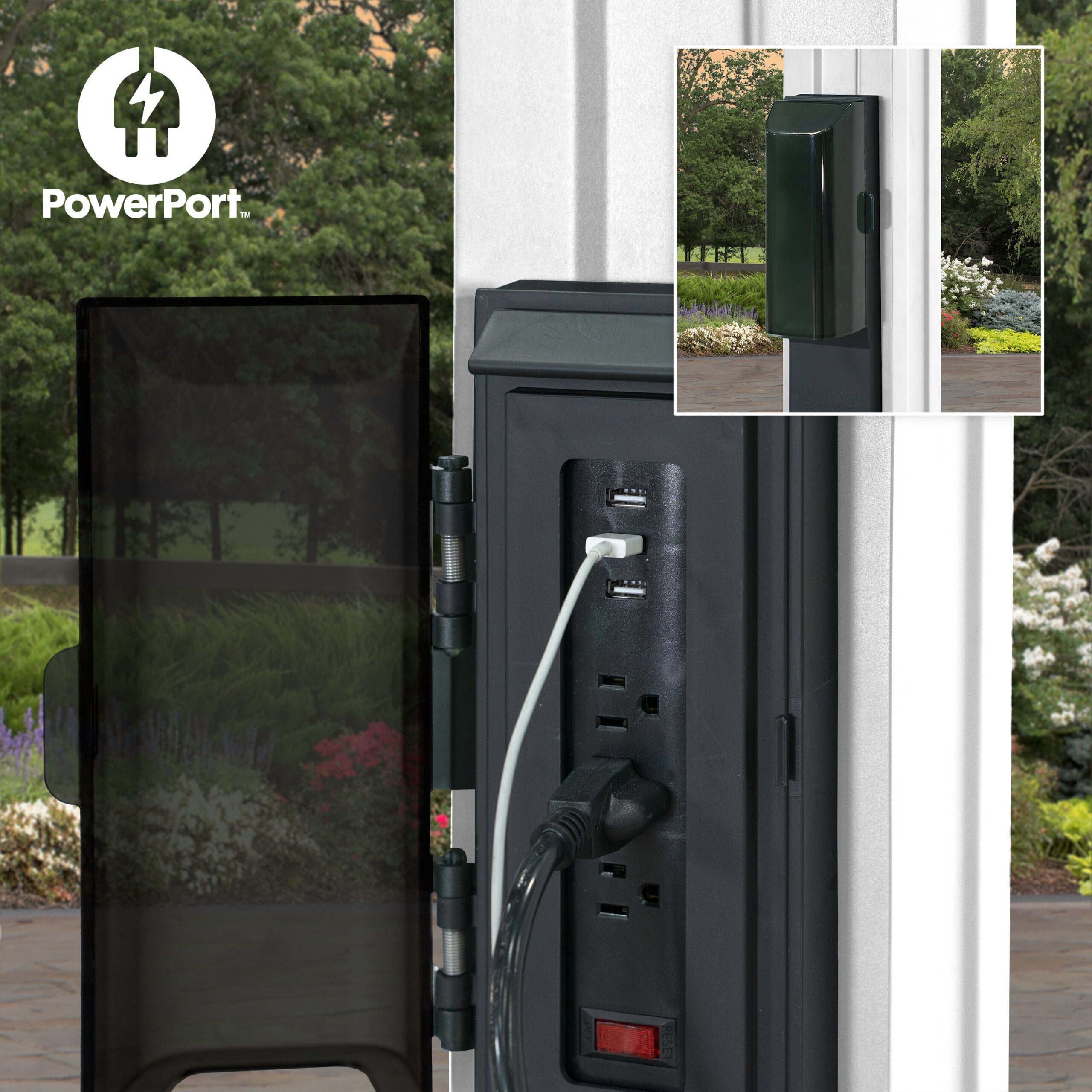 - Powered Up: Patented PowerPort™ features 3 electrical outlets and 3 USB ports to power your outdoor living space, mounting easily to any post on the structure (power source not included)