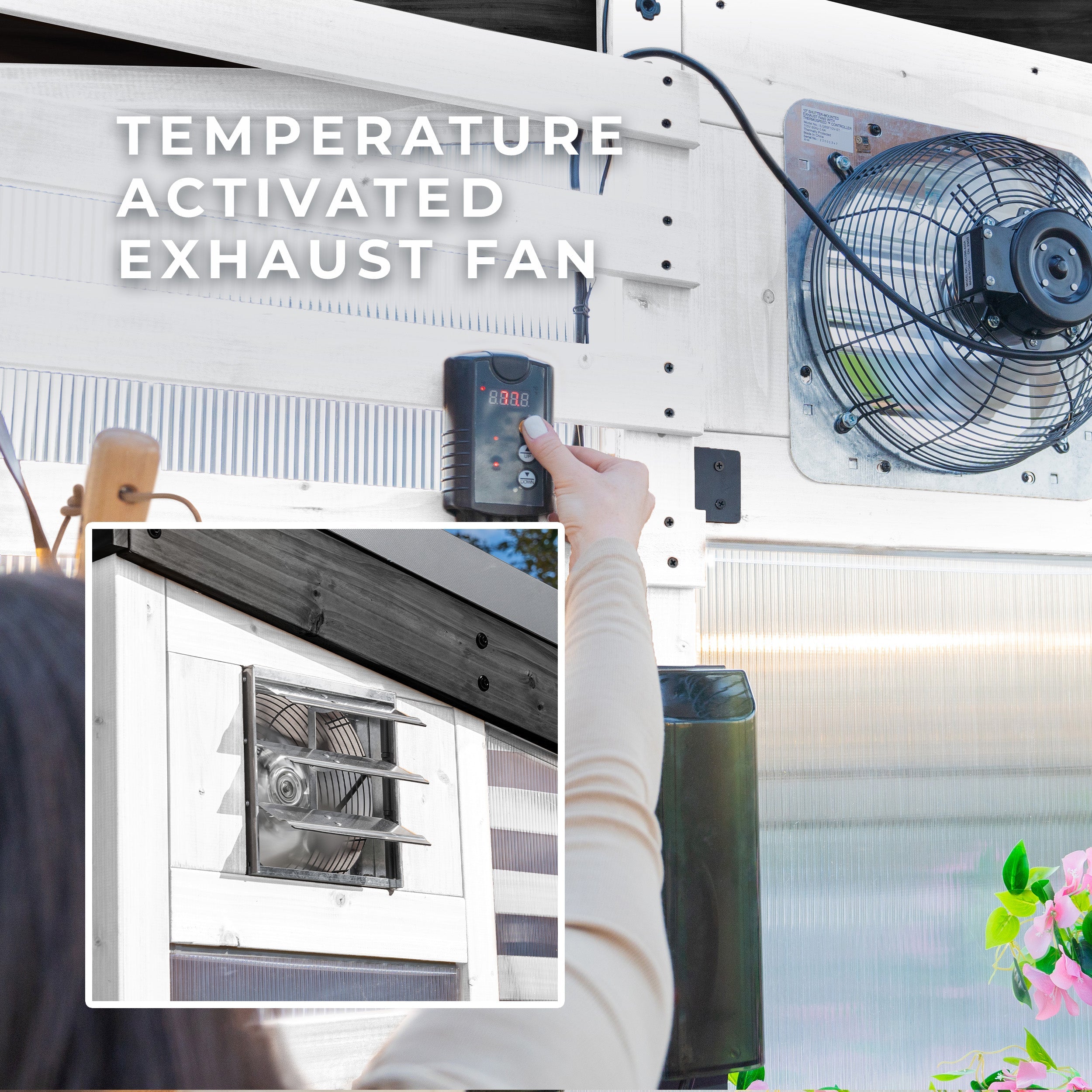 - Forced Ventilation: Includes a temperature-activated exhaust fan to regulate climate for healthier plant growth