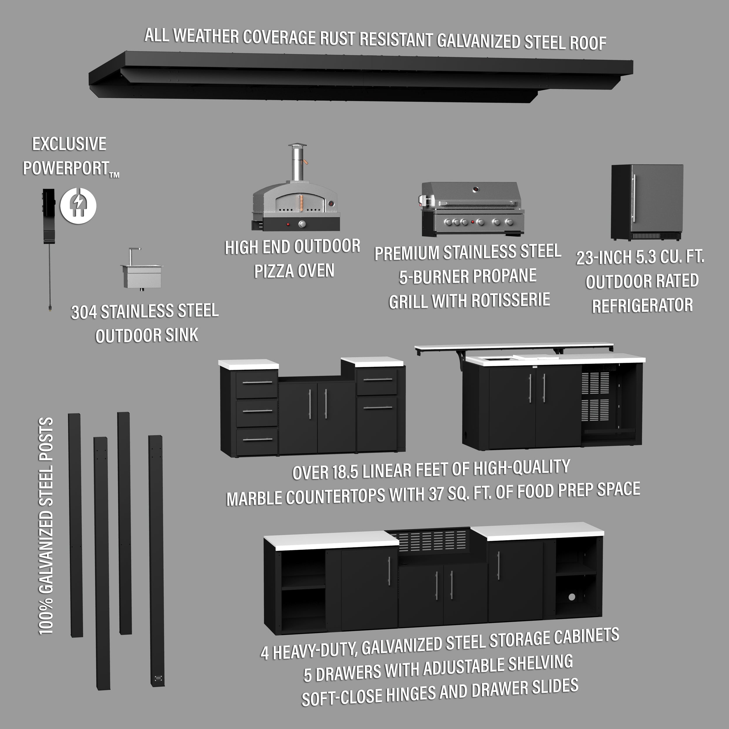 Constructed from corrosion-resistant galvanized steel, this storage system includes four spacious cabinets and five drawers, offering generous space for all your kitchen supplies. Designed to last, the soft-close hinges and drawer slides add a high-end feel and smooth functionality to your alfresco kitchen design.