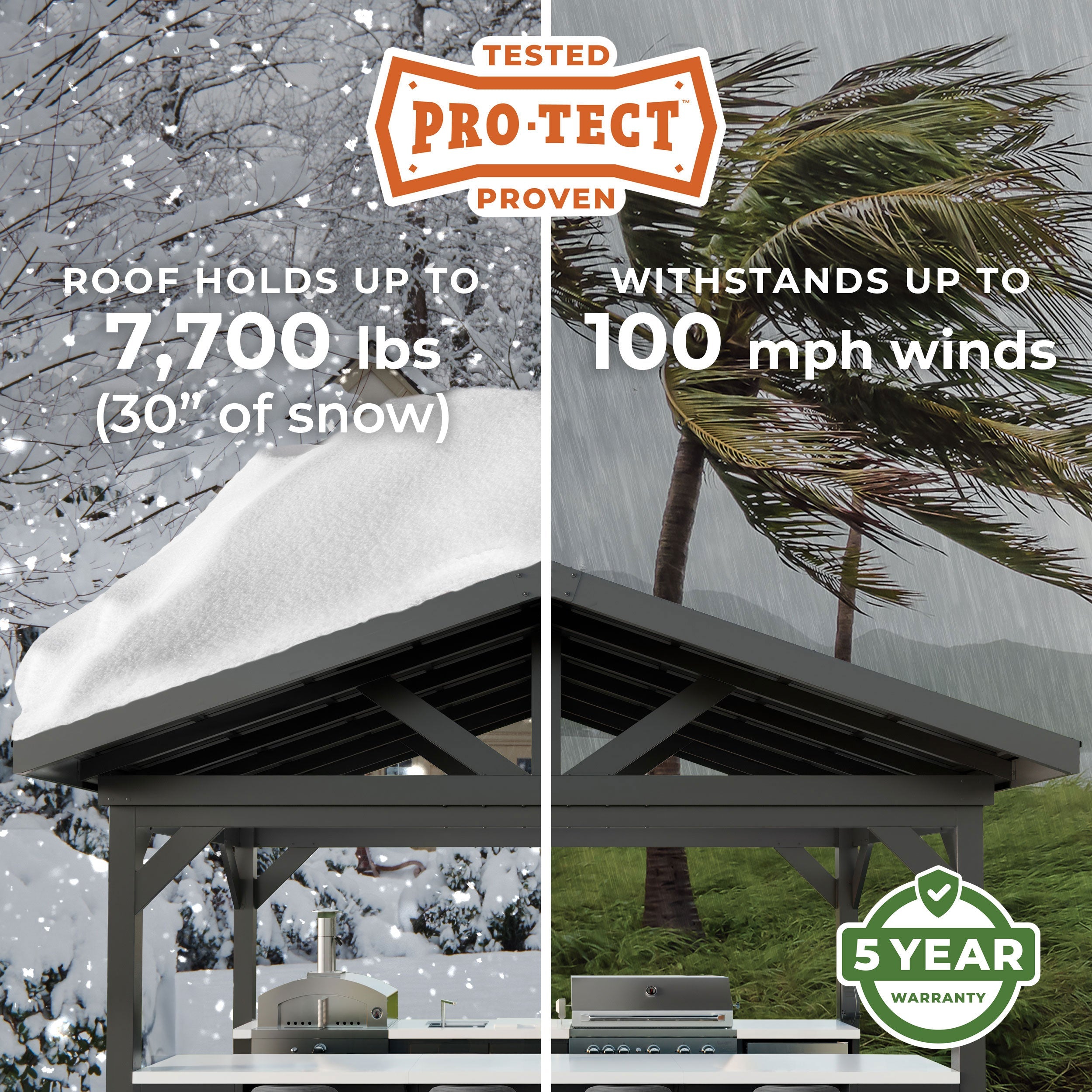 - All-Weather Durability: Pro-Tect™ tested and proven to withstand up to 7,700 pounds or 30 inches of snow load, and winds up to 100 mph* with a full coverage galvanized steel roof