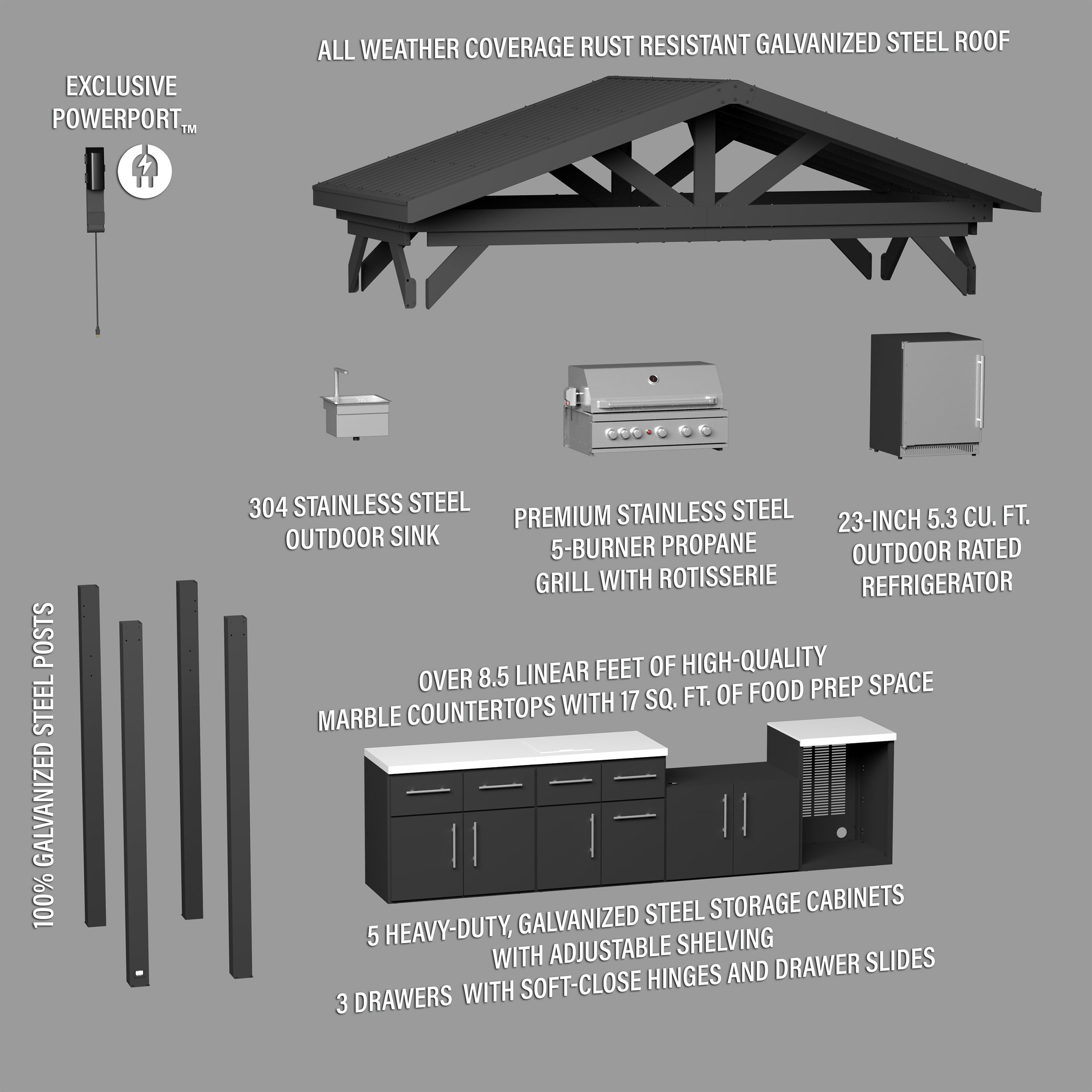 - Powered Up: Patented PowerPort™ features 3 electrical outlets and 3 USB ports to power your outdoor kitchen, mounting easily to any post on the structure (power source not included)