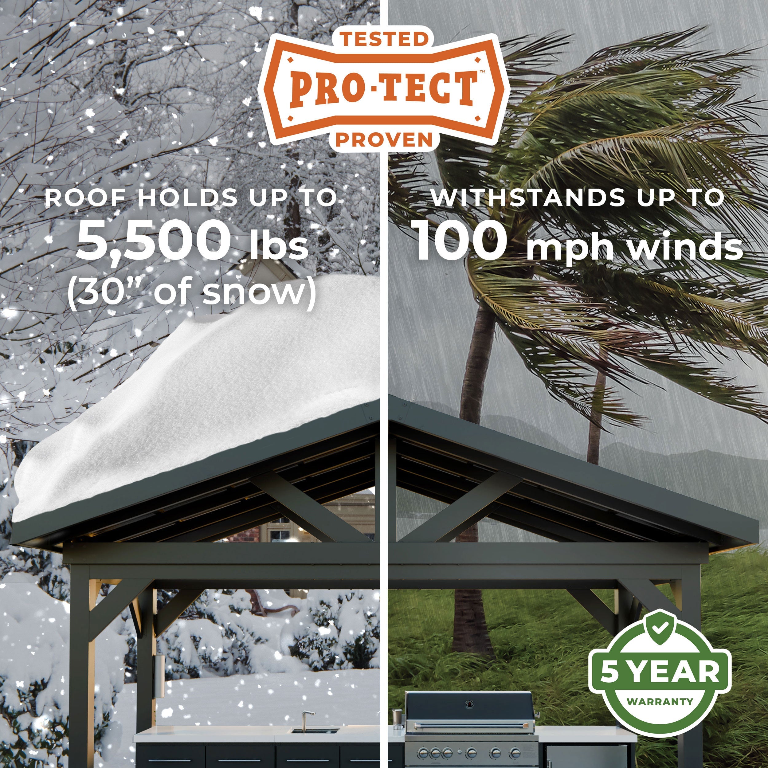 - All-Weather Durability: Pro-Tect™ tested and proven to withstand up to 5,500 lbs or 30″ of snow load, and winds up to 100 mph* with a full coverage galvanized steel roof